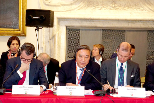 為落實習近平主席在接見中意企業(yè)家代表時的講話精神,宋志平在會上提出倡議:一是繼續(xù)加強中意企業(yè)間的溝通與交流,真正發(fā)揮中意企業(yè)家委員會的平臺效用;二是中意企業(yè)加強全球合作,發(fā)揮各自優(yōu)勢,聯(lián)合開發(fā)第三方市場,為世界經(jīng)濟的發(fā)展做出積極貢獻。他強調(diào),中國正在全面推進改革開放,經(jīng)濟發(fā)展模式從高速增長進入高質(zhì)量發(fā)展階段,市場活力得到充分激發(fā),中國建材將進一步強化與意方企業(yè)在新技術、新經(jīng)濟方面的合作,誠邀意方企業(yè)來華共同發(fā)展。宋志平的發(fā)言得到了中意雙方與會代表的熱烈響應。