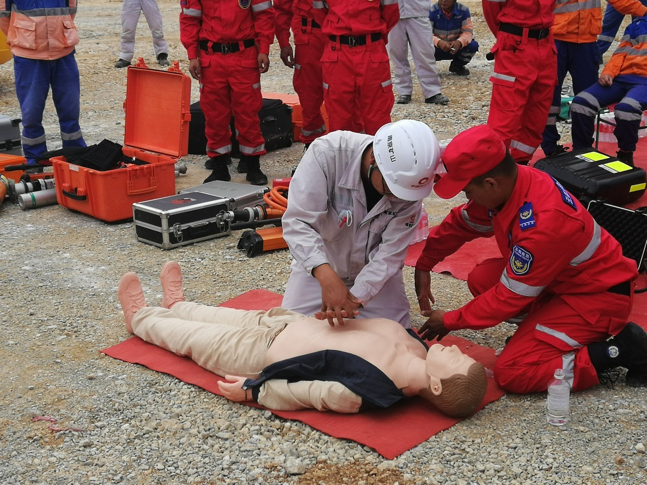 演練活動以耿馬分分公司河底崗礦山鉆機組人員臨邊墜落為假想事故,對事故發(fā)現(xiàn)、信息上報、初步控制、現(xiàn)場搶險、恢復(fù)生產(chǎn)全部過程進行了演練。各參演部門反應(yīng)快速、處置合理、應(yīng)急高效,整個演練過程組織嚴謹、場景逼真、秩序井然。演練活動還邀請到了臨滄市礦山救護大隊進行現(xiàn)場交流和指導,臨滄市救護隊人員現(xiàn)場為大家演示了“人員現(xiàn)場急救”知識講解和示范,并組織現(xiàn)場參加演練人員進行模擬急救,現(xiàn)場氣氛熱烈,各部門員工積極參與。