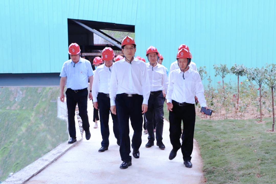 周育先一行率先赴九江瑞昌調(diào)研中建材新材料有限公司,聽(tīng)取了華東材料黨委書(shū)記、總裁,中建材新材料董事長(zhǎng)王盛偉關(guān)于瑞昌項(xiàng)目建設(shè)、智慧礦山、生產(chǎn)準(zhǔn)備等匯報(bào),并深入現(xiàn)場(chǎng)調(diào)研了礦山、骨料線(xiàn)、廊道建設(shè)情況。該項(xiàng)目自2021年3月開(kāi)工,期間克服環(huán)保督察、特大洪水、新冠疫情等影響,在實(shí)際建設(shè)期不足一年的情況下,基本建成3000萬(wàn)噸/年超大型礦山骨料生產(chǎn)基地,周育先對(duì)此給予充分肯定,并對(duì)項(xiàng)目綠色化、智能化、高端化、精細(xì)化水平給予高度評(píng)價(jià)。關(guān)于下一步工作,周育先提出三點(diǎn)要求:一是做好規(guī)劃設(shè)計(jì),通過(guò)信息化、數(shù)字化、智能化實(shí)現(xiàn)企業(yè)未來(lái)的高效運(yùn)營(yíng);二是加快項(xiàng)目建設(shè),早投產(chǎn)早見(jiàn)效;三是加強(qiáng)防疫與安全環(huán)保,做好礦山復(fù)綠工作,繼續(xù)穩(wěn)定綠色發(fā)展。